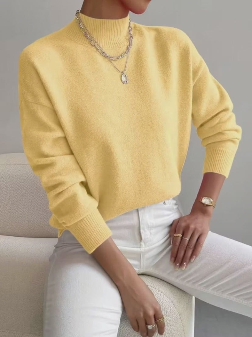 A timeless wardrobe essential designed for both comfort and elegance. Crafted from a soft, high-quality knit, this sweater features a refined mock neckline, ribbed cuffs and hem, and a relaxed silhouette that flatters every figure.